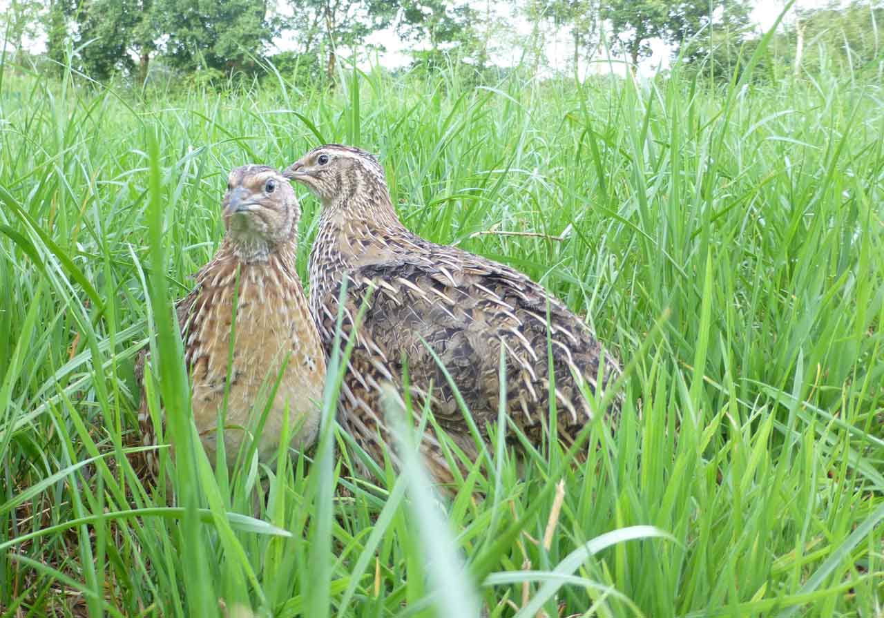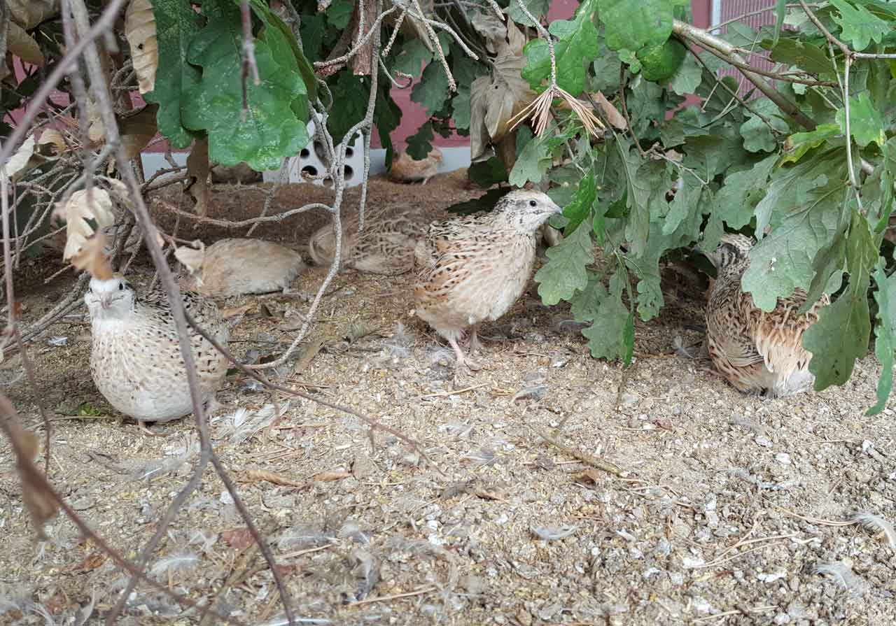 Unsere Wachteln leben auf unserem Hof in großzügigen Volieren wo sie sich zwischen Außen- und Innenbereichen frei bewegen können.